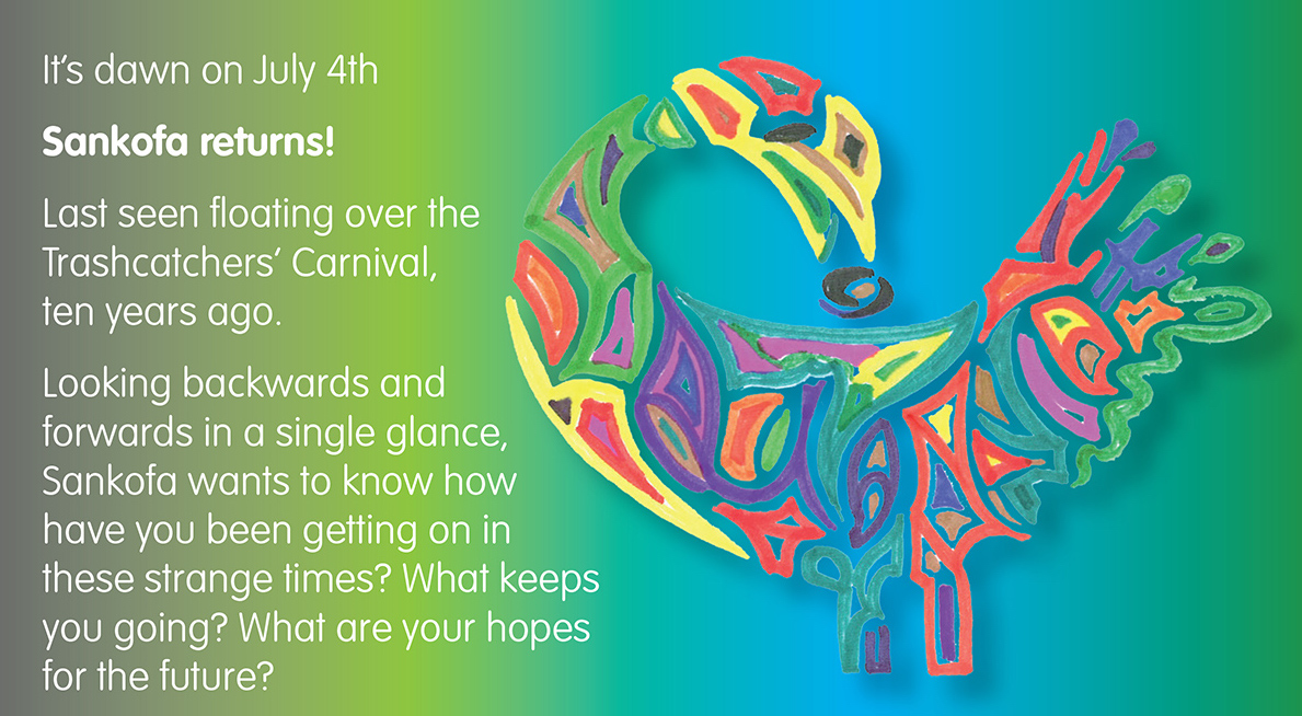 On July 4th, the Sankofa Bird returns to Tooting and would like to know how people have been getting on in these strange COVID times: what has kept us going? what or who do we miss? what do we hope in the future? The Bird’s visit gives us chance to reflect, individually and collectively on how we might “build back better”.